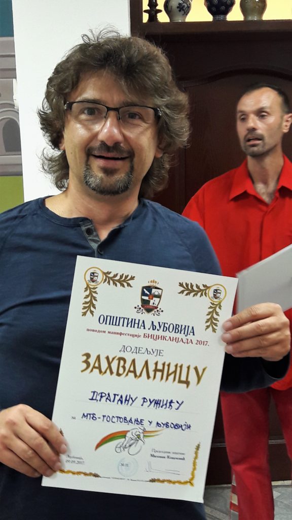 Stolovi su sad već prepuni poklona. Nešto od promotivnog materijala nam je pripremila i Turistička organizacija Ljubovija, koja je, na svoj način, podržala ovu manifestaciju. Vredi pomenuti da je organizator “Biciklijade” Opština Ljubovija, s grupom ljubitelja biciklizma na čelu sa Miloradom Živkovićem – Mikijem. Toliko o tom zvaničnom delu.