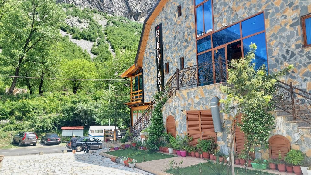 Stižemo do preslatke, tipski uređene varošice, i ulazimo u samo njeno srce – na popločanu uličicu i maleni trg. S obe strane su lepe kamene kuće, u njihovom prizemlju su kafići i prodavnice a natkriljuju ih gromadne stene i planinski vrhovi. Sve deluje vrlo prijatno, pitomo, odiše dobrodošlicom. Srećemo i kolege-bicikliste, odmaraju u hladovini uz hladno pivo. A, šta ćemo i kako ćemo nas dvoje? Provrzmali smo se malo centralnom uličicom i trgom, obišli lepe kuće i zastali u hladovini ispred prodavnice. Dok smo se dogovorali šta i kako dalje pokraj nas su spektakularno protutnjali motoristi. Idu iz pravca Gusinja prema granici i Podgorici i u prednosti su u odnosu na nas jer znaju kakav je put dalje prema Gusinju. To nas poprilično initrigira pa smo odlučili da sledeći put obavezno i mi produžimo do Gusinja. Sad je bolje da se ne zadržavamo mnogo jer dan brzo odmiče a ne bismo da kroz kanjon vozimo po mraku. Zato bolje da preskočimo odlazak u restoran na ručak jer bi se previše opustili, već da uđemo u prodavnicu i potražimo nešto za jelo.
