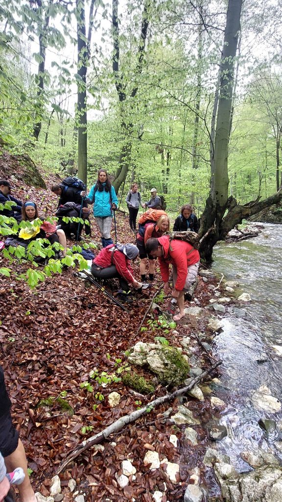 I dalje je hladno i oblačno, a povremeno i vetar zagudi. Nema sunca kojeg priželjkujemo. Prolazimo kroz prelepe zelene šume i spuštamo se do reke. A u nama pesma: Siđi do reke, večeras ja sam dole, siđi do reke.. A, reka – luda, bučna, nestrpljiva, ne i netrpeljiva, ali zato hladna, oštra. Obale joj prekrivene lišćem još jesenas otkinutim i granjem od teškog snega popadalim. Šta nam je činiti? Izuvaj se ili gazi u cipelama, Tisnica je dublja nego što se očekivalo i nemoguće je s jedne na drugu stranu preći preskačući preko kamenja. I svi smo se sagnuli i krenuli s izuvanjem. Ja odustajem. Da bosa prođem kroz rečicu, pa nastavim obalom bosa, ili da se opet obuvam, vezujem, pertle, izuvam, obuvam, .. Nema od toga vajde. Ulazim u punoj opremi. Prelazim jednom, drugi put, treći, … Ko će to da broji?! Svako bira gde mu je prelazak najsigurniji i najzgodniji, najspretniji pomažu drugima, manje spretni upadaju u reku, kvase se, ali junački sve podnose. Ali, ima jedan dasa, on bi mimo svih, pa uzjahao deblo što je palo preko reke, ne znamo šta je mislio, možda da je kanu i da će da plovi, ali gde mu je veslo.. Ipak se malo proračunao. Spas je našao spretnim skokom u vodu i pretrčavanjem na drugu obalu. Bilo je još mnogo originalnih ideja i dobrih izvedbi i, srećom, uvek se sve dobro završavalo.