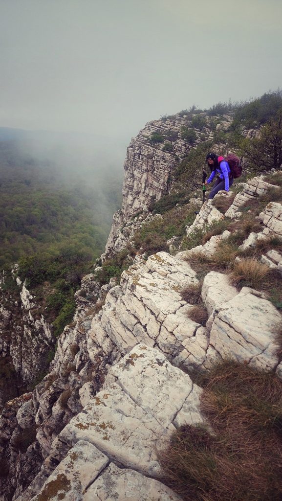 I stigli smo, s kamena na kamen, preko stene, između kamenih stepenika prirodom isklesanih, zaobilazeći žbunje, sve pazeći da ne upadnemo u neki od procepa. Povremeno zastajemo. Zadivljeni. I ovde je priroda upotrebila svoje čarobne moći, poigrala se kamenom, udahnula mu dušu. Ponovo čujem kako kamen šapuće.. Volim taj zvuk, to šaputanje. Okrećem glavu, nudim obraz levi, pa desni. Šapat je to koji miluje.. Ivana kaže da to vetar fijuče kroz njene planinarske štapove i pravi pesmu sa planine. Neka misli da je tako. Ja znam.