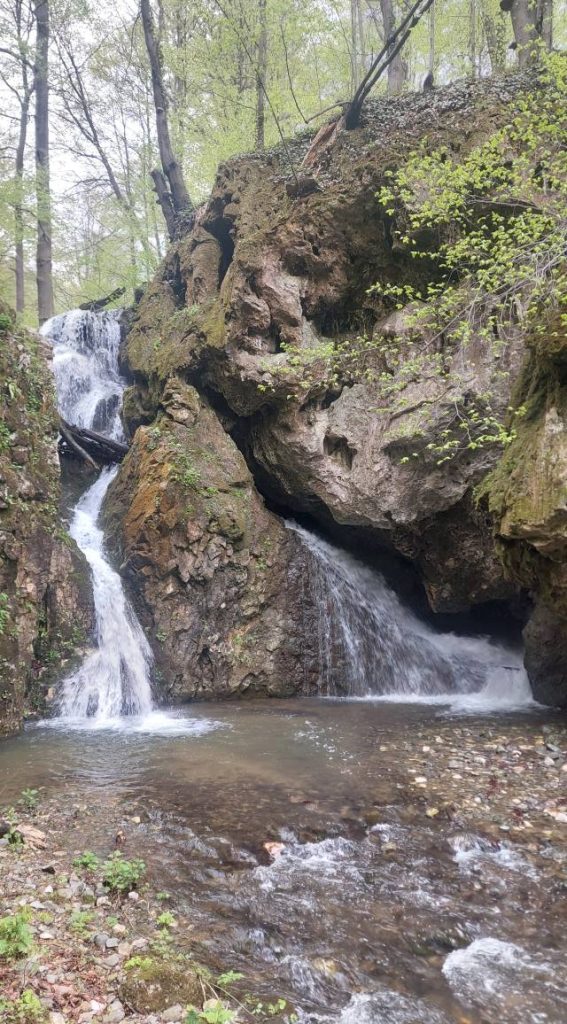 Pauzu smo napravili kod vodopada na ušću Perasti u Tisnicu, koji smo zagledali i odozdo i odozgo i tu, u dubokoj šumi, zaseli da izbacimo vodu iz cipela, a neki konačno i da se obuju. I ja sam se izula, izvrnula cipele iz kojih je dosta vode pljusnulo, obula suve čarape preko kojih sam stavila najlon kese, pa ponovo u mokre cipele. Kese su tu da čuvaju temperaturu tela, a suve čarape da barem privremeno osetiš blaženstvo nakon gacanja u mokrom.